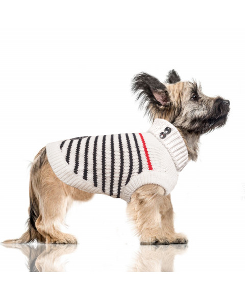 Marineblau/cremeweiß gestreifter Pullover mit rotem Zierstreifen