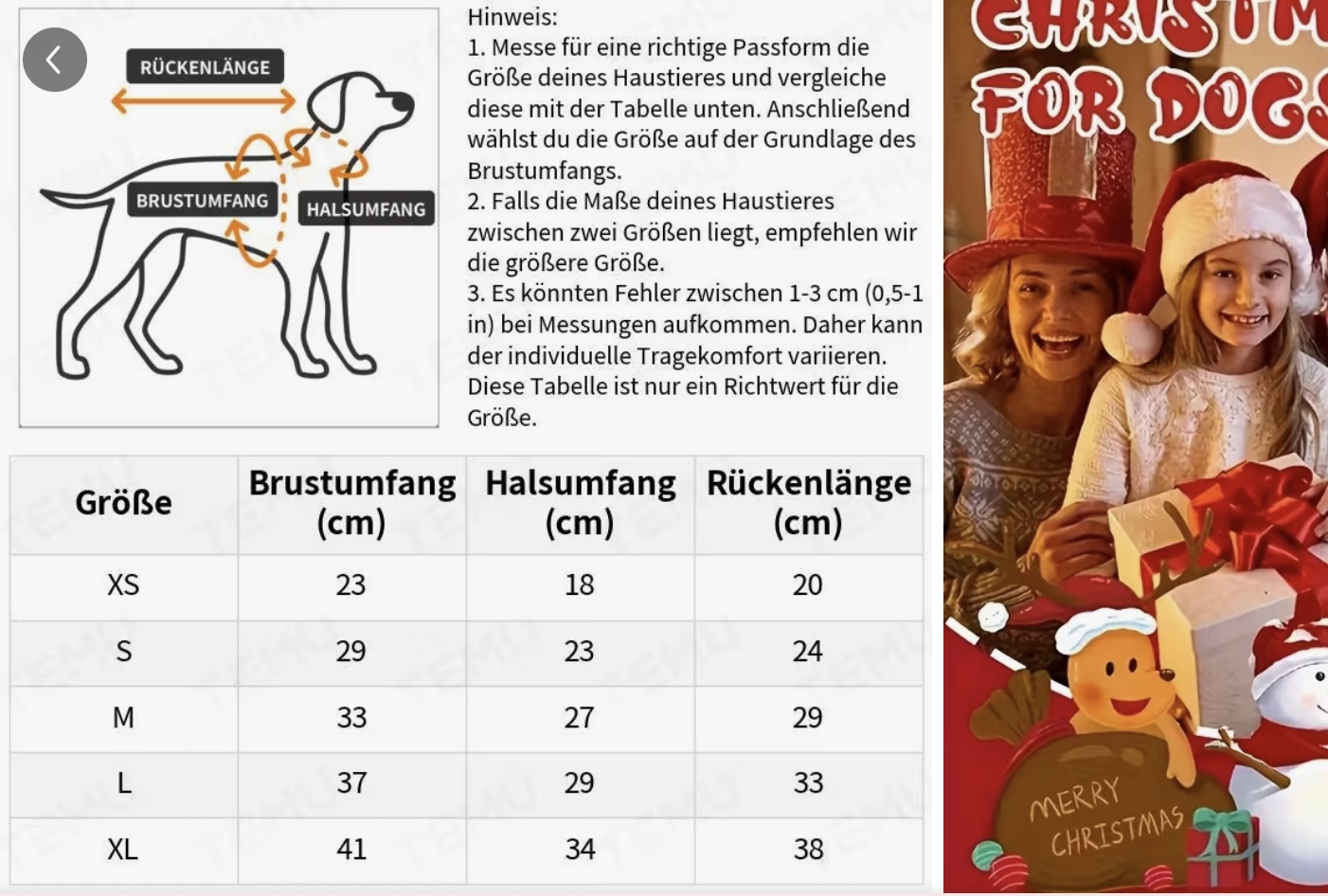 - Haustierkleidung mit Renntierdesign für Weihnachten.