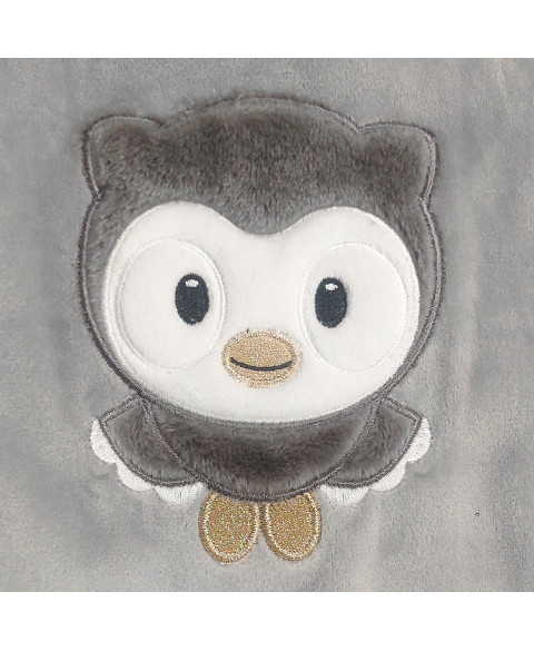 Mit kleiner Eulenapplikation aus Fell und Goldglitzer.