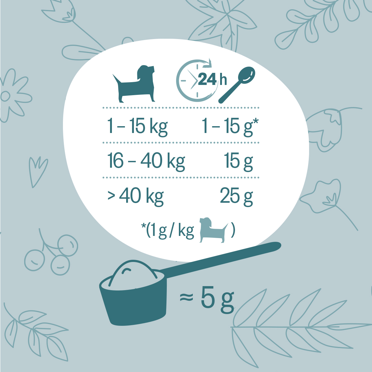 Mit 30 ausgewählten Kräutern unterstützt der Hokamix Vitality Booster auf natürliche Weise Stoffwechsel, Haut, Fell und den Bewegungsapparat deines Hundes. Vitamine, Mineralstoffe und Spurenelemente tragen dazu bei, Mangelerscheinungen vorzubeugen und das Wohlbefinden zu steigern.