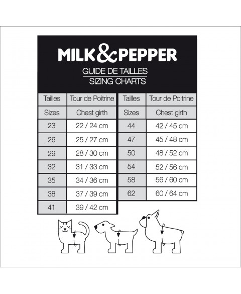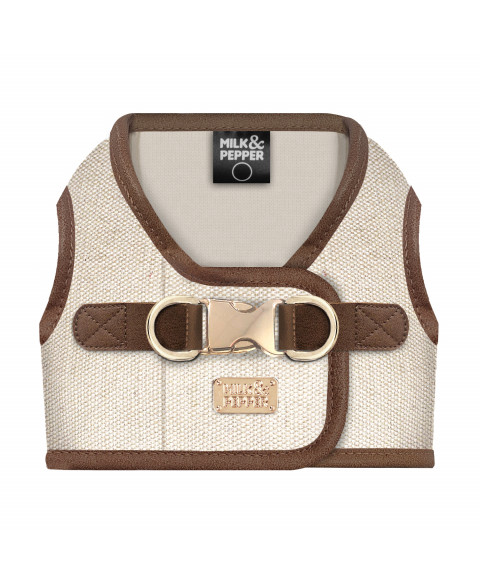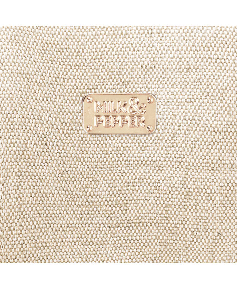 - Clip und Schnalle aus goldfarbenem Metall, mit einer kleinen goldfarbenen „Milk&Pepper“-Plakette