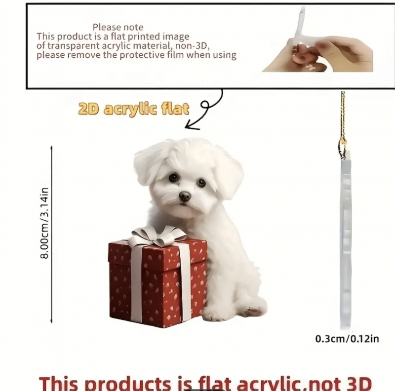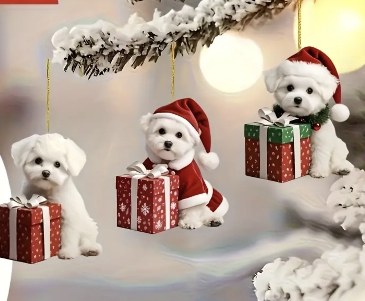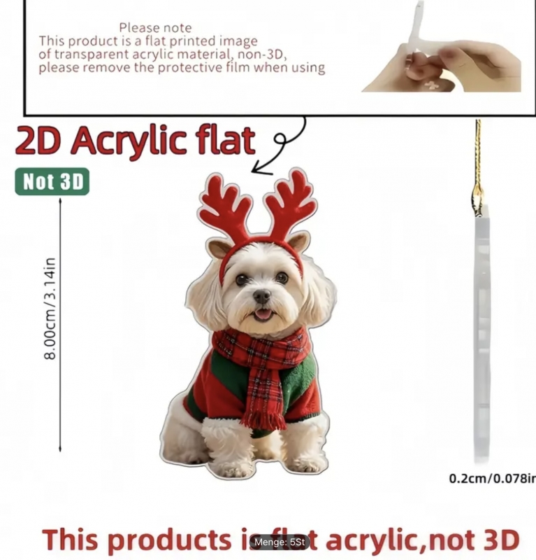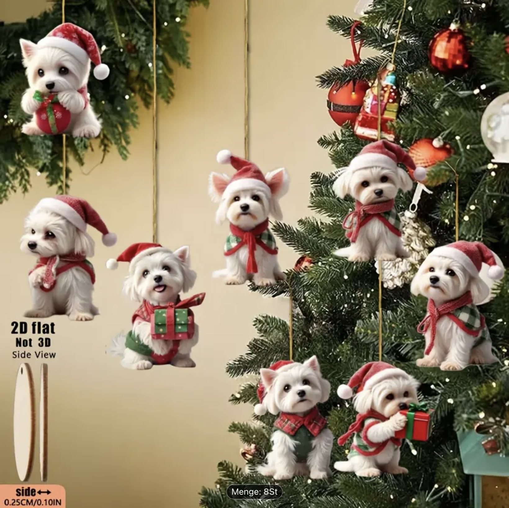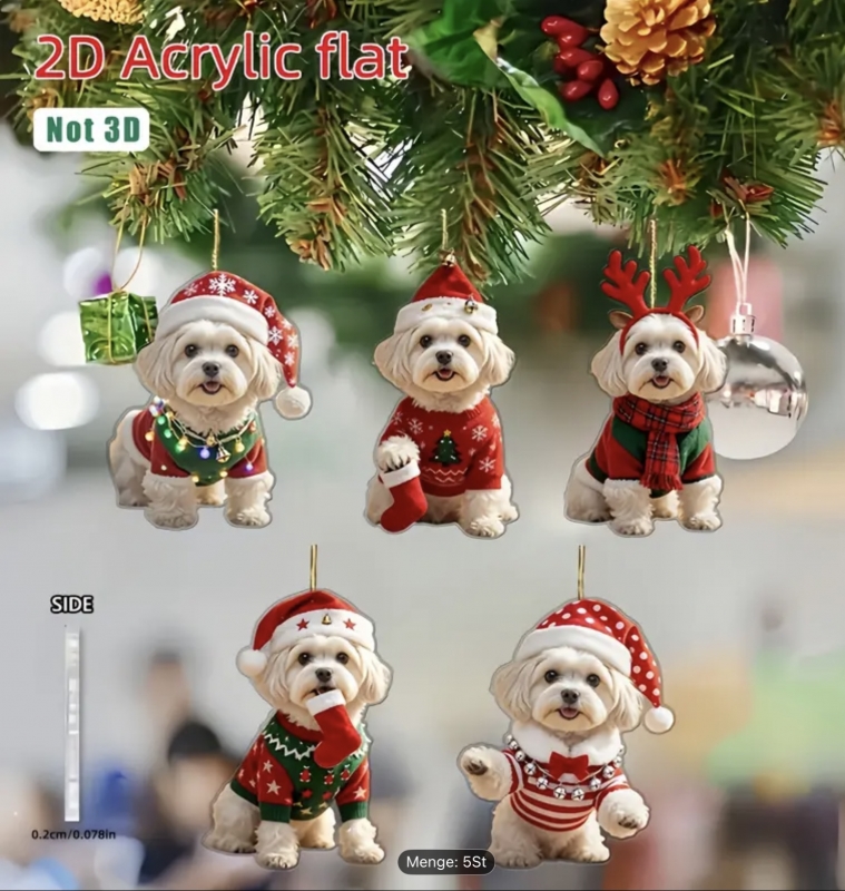 Niedliche Malteser Welpen als Weihnachtsschmuck Set in 2D, Flaches Acryl, keine Kugel